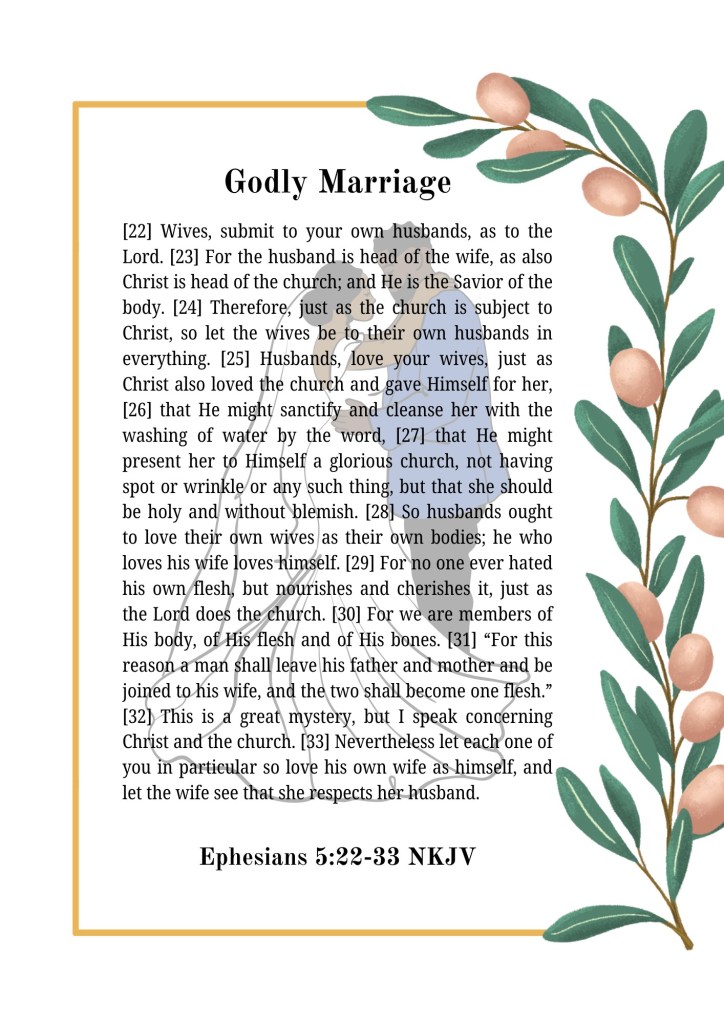 April 1, 2025/dannithewriter Share this: Click to share on Facebook (Opens in new window) Facebook Click to print (Opens in new window) Print Click to email a link to a friend (Opens in new window) Email More Click to share on Tumblr (Opens in new window) Tumblr Click to share on Pinterest (Opens in new window) Pinterest Click to share on X (Opens in new window) X Click to share on WhatsApp (Opens in new window) WhatsApp Like Loading... Related Categories: ScripturesTags: Marriage