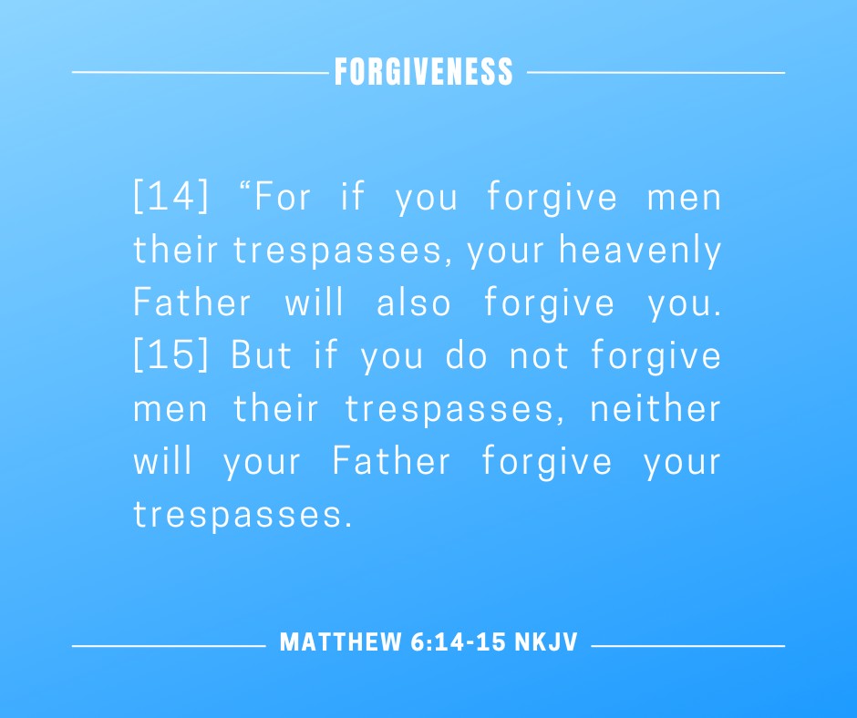In today’s blog, I want to discuss walking in forgiveness. This is a touchy subject, but it’s necessary to address it. Otherwise, we can find ourselves walking in unforgiveness and reaping the consequences of it. As believers, we can not harbor unforgiveness in our hearts toward others. We must choose to forgive others no matter how big or small the matter is. We can not receive forgiveness from our Father if we are walking in unforgiveness toward those who have offended or done us wrong. Forgiving others is not always easy, but we are required to forgive.