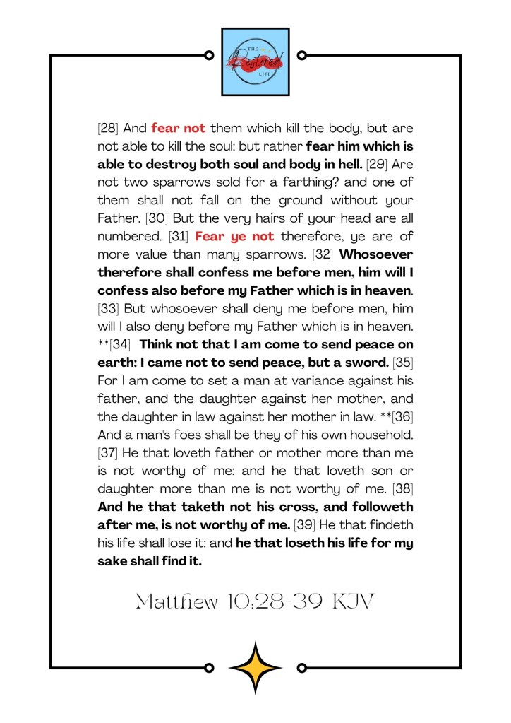 We must understand that fearing man brings a snare, whereas trusting in God keeps us safe. No good comes from the fear of man. It is detrimental, and with it comes major consequences. In the Word, we are instructed to fear Him (God), who is able to destroy both the soul and body in hell, not man who can kill the body but not the soul. (Matthew 10:28) Even though man can take our lives, we are to only fear the One who can cast our souls into hell. I know it’s heavy to think about, but that’s the Word. In the face of adversity and persecution, we are not to fear man and what they can do to us. No matter what it costs, we must hold on to our faith in Christ and never deny Him. The result of denying Him is too severe to give in due to fearing men and their persecution.